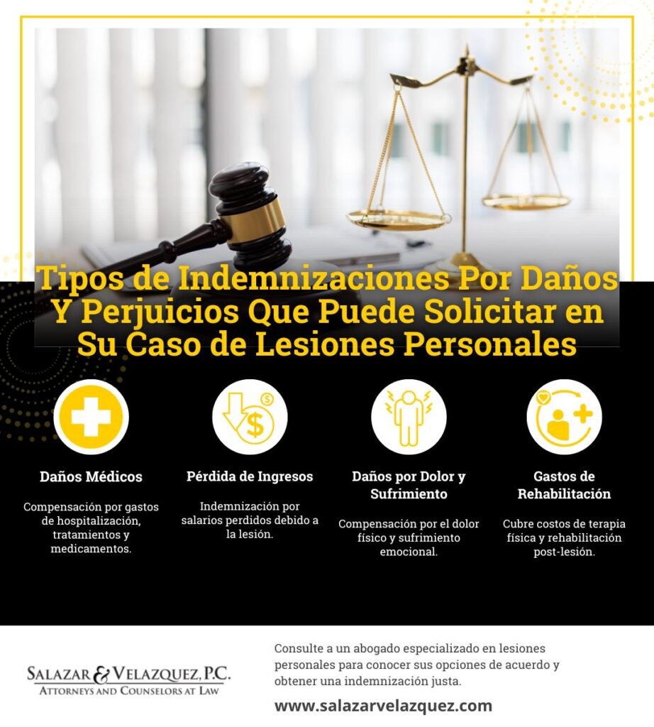 Los daños por dolor y sufrimiento son una parte vital de las demandas por lesiones personales en Texas. Entender cómo funcionan y cómo se pueden calcular es fundamental para obtener la compensación que usted merece. Si ha sufrido una lesión debido a la negligencia de otra parte, no dude en contactar a nuestra firma de abogados, Salazar & Velazquez, P.C. Nuestro equipo de abogados de lesiones está dedicado a ayudarlo a obtener la compensación que necesita para sanar y avanzar después de su accidente. ¡Contacte con nosotros hoy para una consulta gratuita!